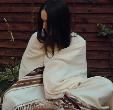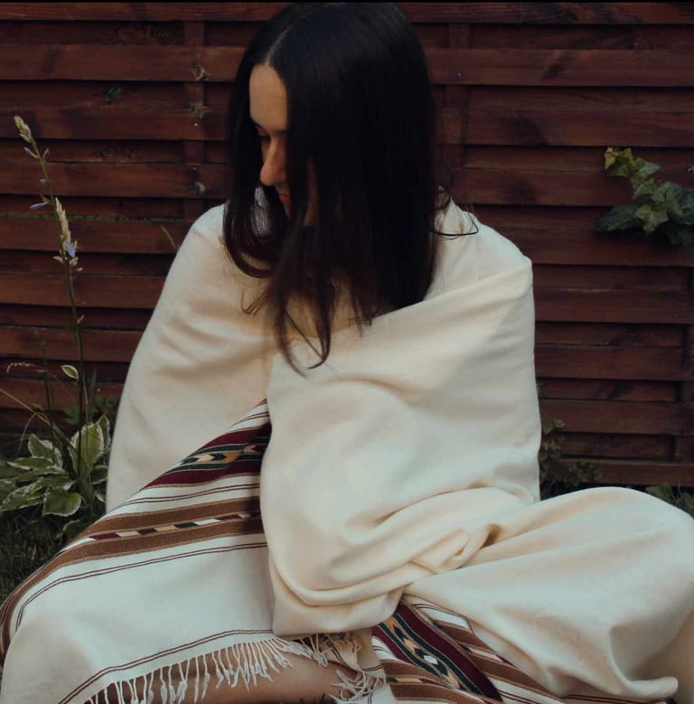 "I really love the shawl I have, it looks amazing with its rich patterns and is also very practical. I use it a lot at home as a light blanket, and it's also useful during hiking and camping. While camping, it´s really nice to use it as an additional soft layer in the sleeping bag, or just wrap it around my shoulder while sitting by a nice fire in the evening. It adds warmth to the whole experience and makes it more cozy.